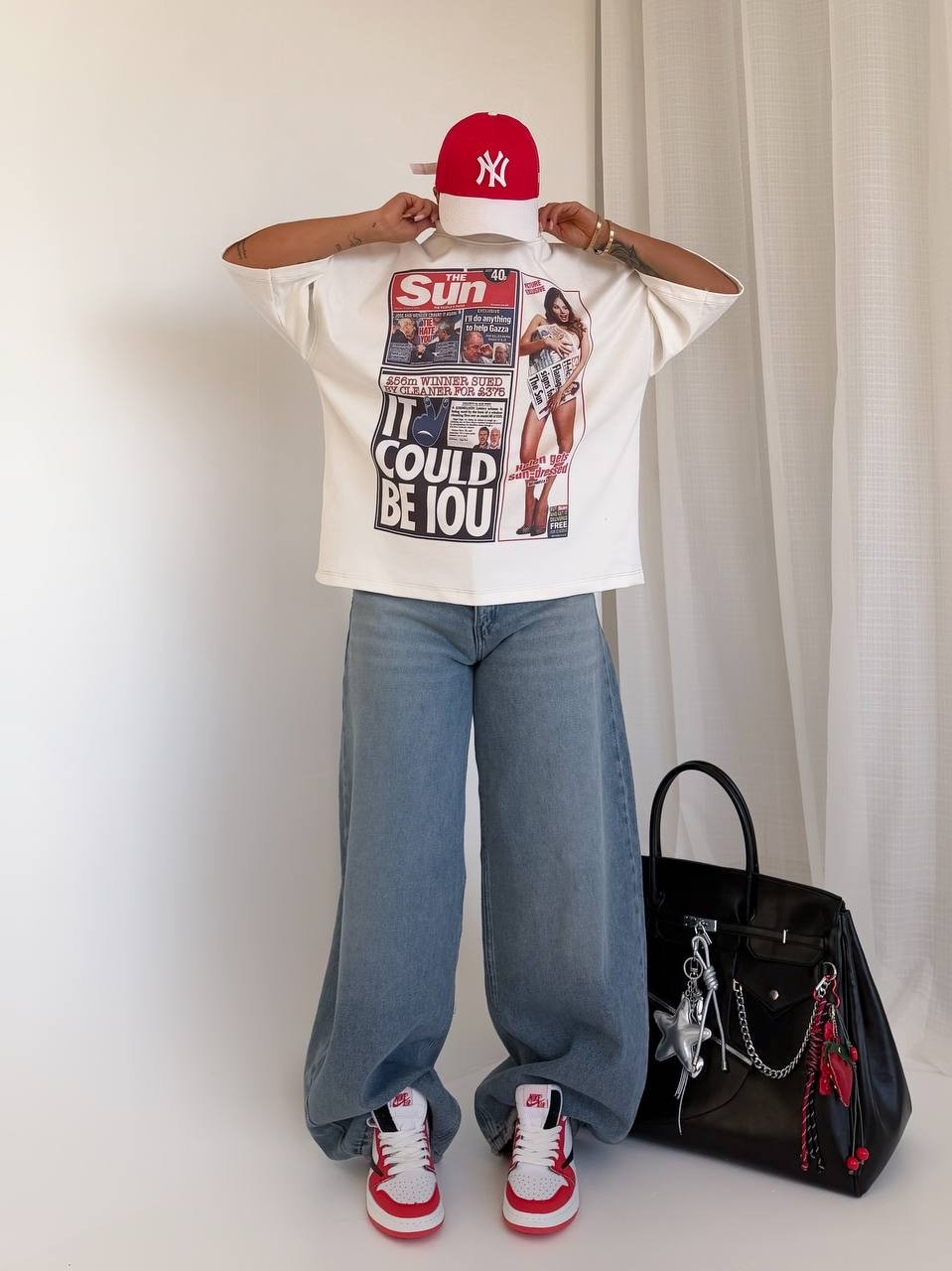 تی شرت باکسی سفید RETRO NEWS کد : 103883