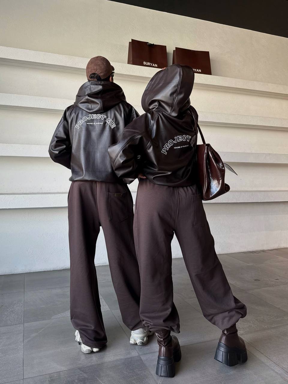 ست هودی شلوار قهوه ای تیره PALM HOODIE کد : 103868