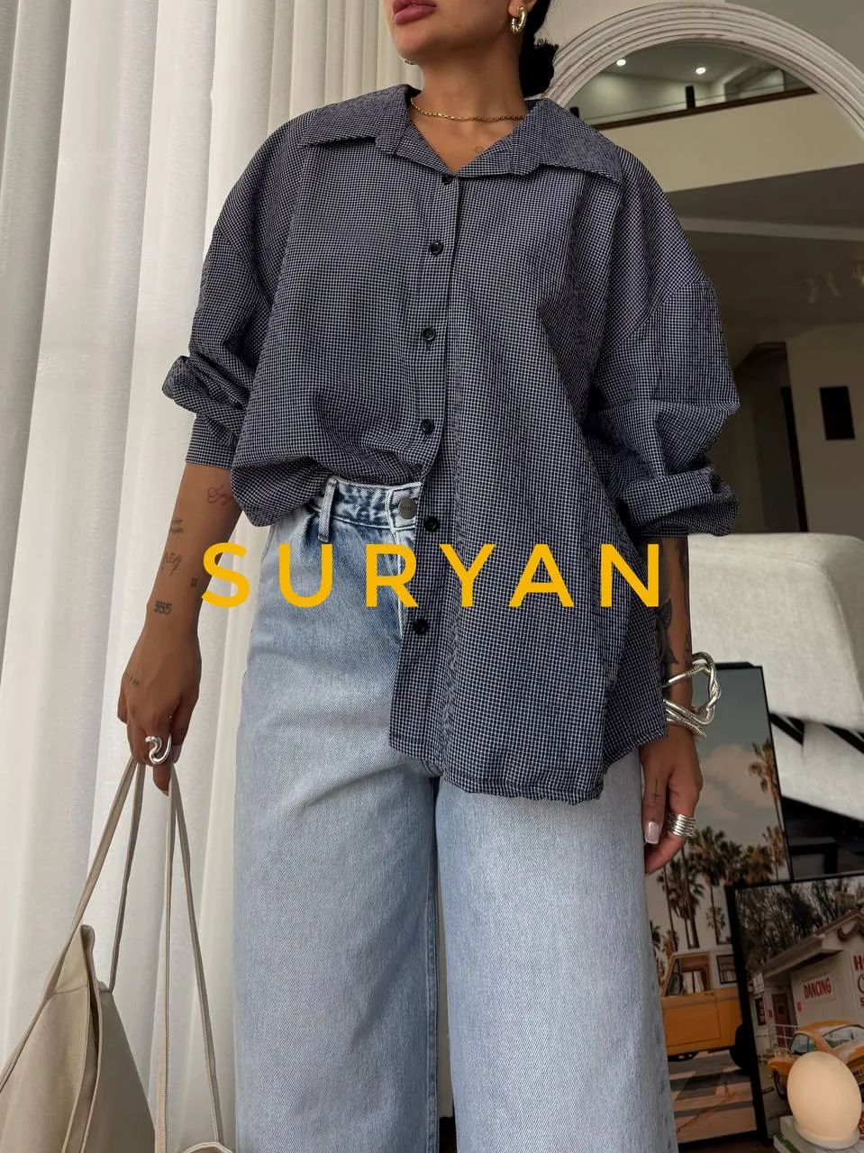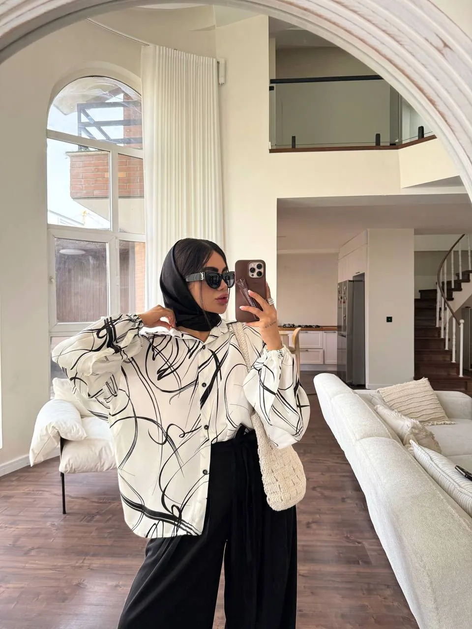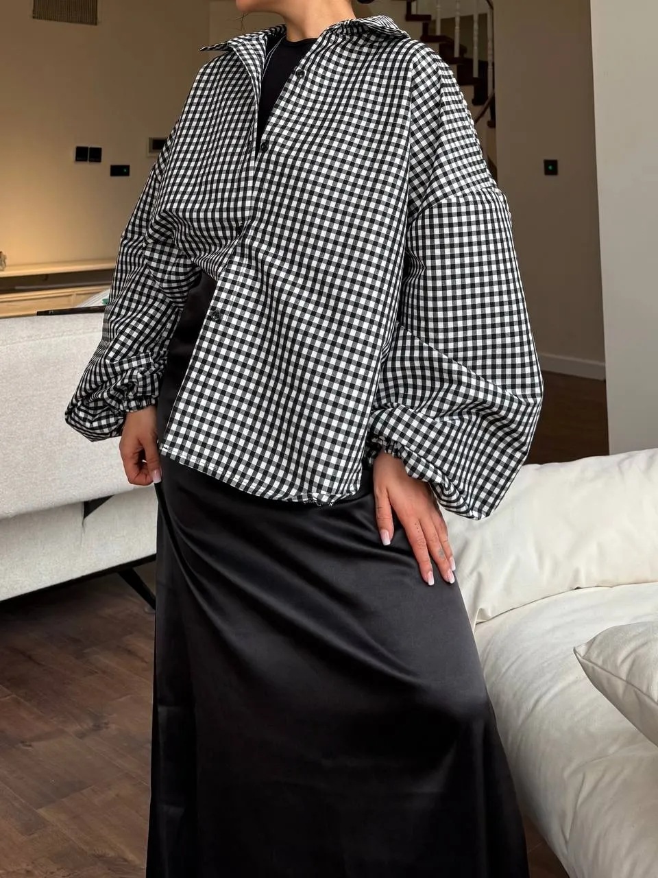شومیز چهارخونه سفید مشکی Black & White کد : 103750