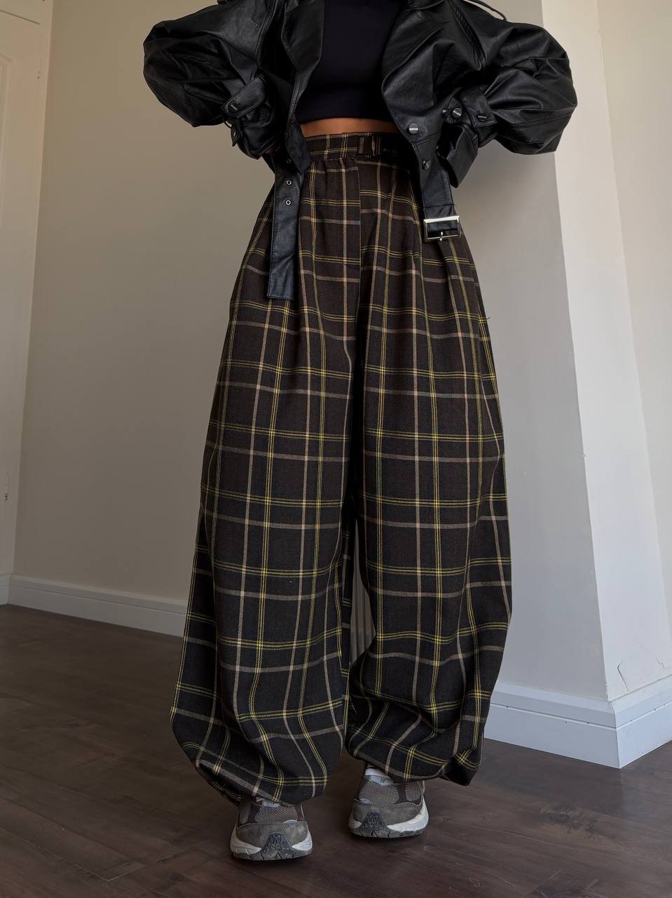 شلوار بگ پیله دار چهارخونه FORO کد : 70678