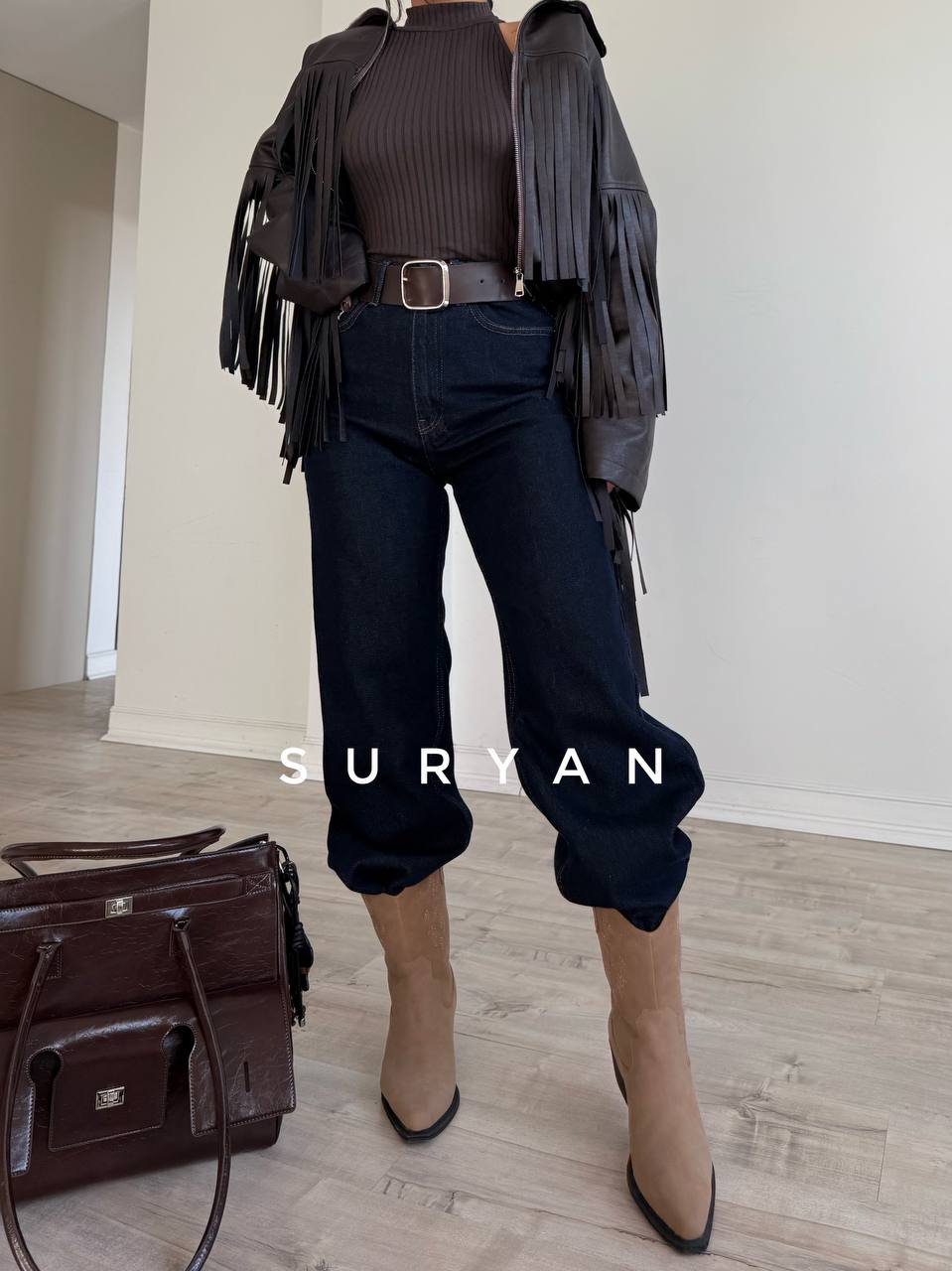 شلوار جین نیم بگ سرمه ای COCO CHANA کد : 70674