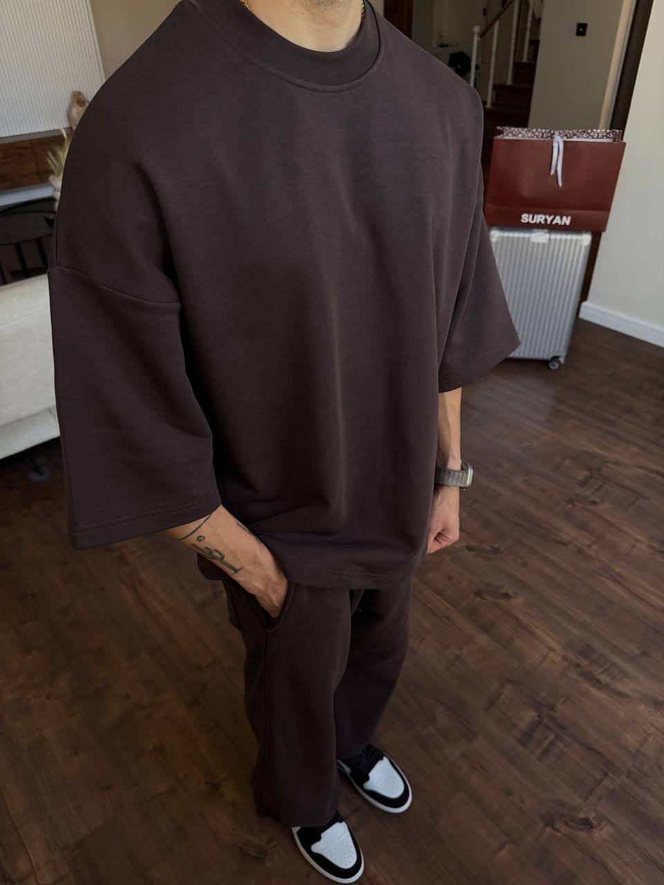 تی شرت باکسی قهوه ای اور سایز SU BROWNY کد : 103828