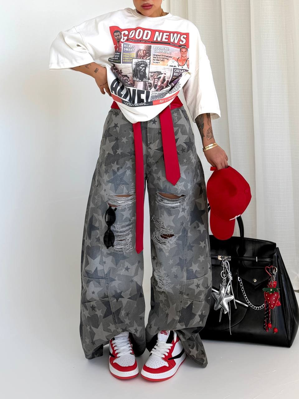 شلوار فول بگ چیریک ستاره ای KOREA کد : 70687